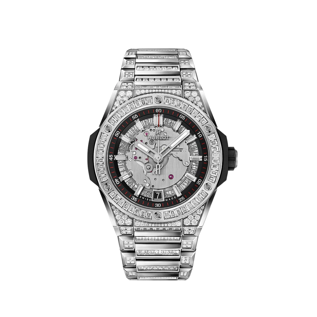 The true aesthetic signature of the Big Bang Integrated, the integrated bracelet, returns to give the watch its strength.