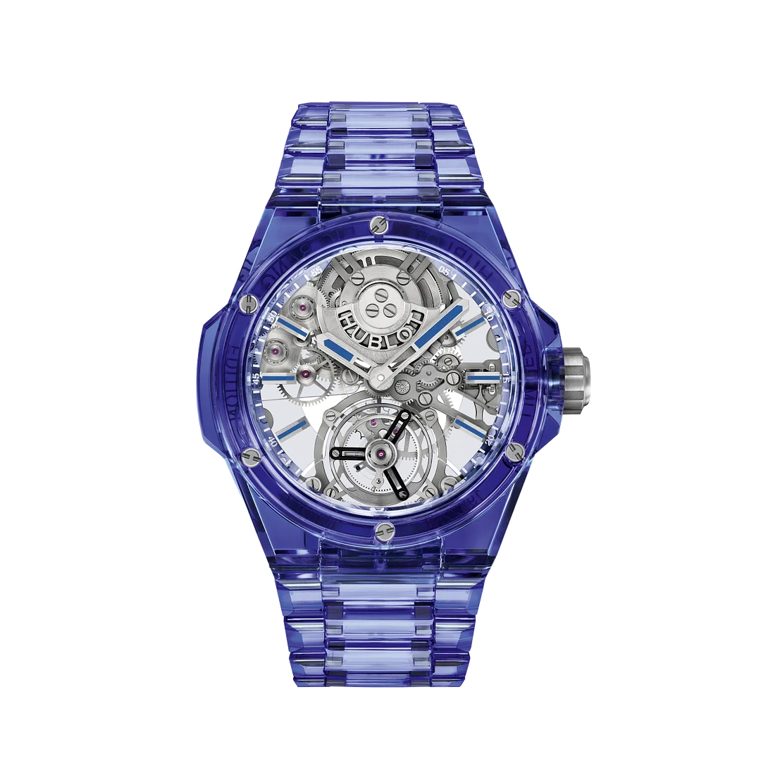 In search of the perfect fusion between movement and case, Hublot engineers and chemists have researched and developed a transparent material which reveals the heart of the watch, all while being robust enough to effectively protect the mechanism. That’s how the Manufacture has become the expert of synthetic sapphire, a material from which it derives its aesthetic qualities that are unique within watchmaking – transforming each watch into a work of art.
