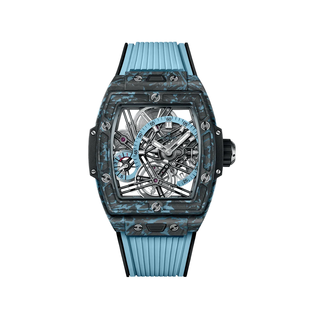 Popular in motor racing, carbon possess unrivalled mechanical qualities. It is ultra-lightweight, resists torsion and stands out with its optimal relationship between weight and resistance. This high-tech material is in the form of a fiber mesh embedded in an epoxy resin. Hublot also uses a 3D carbon where the fibers are woven on three planes. Other models use a “frosted” carbon with colored inclusions.