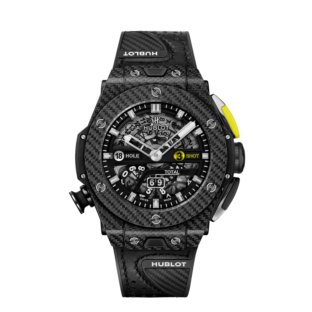 Popular in motor racing, carbon possess unrivalled mechanical qualities. It is ultra-lightweight, resists torsion and stands out with its optimal relationship between weight and resistance. This high-tech material is in the form of a fiber mesh embedded in an epoxy resin. Hublot also uses a 3D carbon where the fibers are woven on three planes. Other models use a “frosted” carbon with colored inclusions.